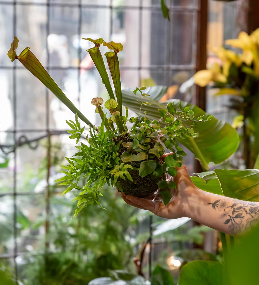Laboratorio floral y botánico - Nuestra tienda física. Encontrarás una gran variedad de plantas, diseños florales, complementos botánicos, sin olvidarnos nuestras kokedamas y terrarios.